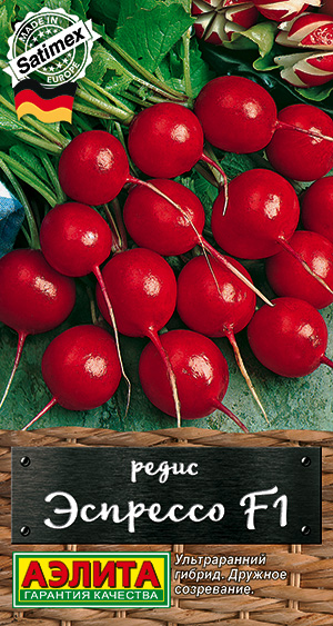 Ультраскороспелый гибрид от немецкой компании Satimex для получения самого раннего урожая в открытом грунте и в зимней культуре в условиях обогреваемых теплиц. Дает великолепную пучковую продукцию через 15-18 дней после появления всходов. Корнеплоды красные, округлые, гладкие, однородные по форме и размеру. Средняя масса – 22-25 г. Мякоть сочная и хрустящая, отличного вкуса. Урожайность превышает 3 кг/м2.