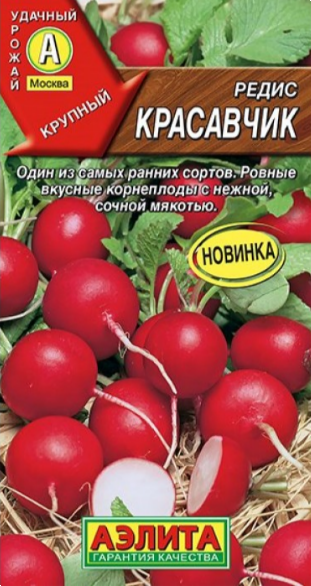 Один из самых ранних сортов. Подходит для открытого грунта и круглогодичного возделывания в специализированных теплицах. Неприхотливый, формирует урожай через 3 недели от всходов. Отдельные первые корнеплоды созревают через 17-19 дней. Редис красный, округлый, однородный по размеру, не растрескивается. Средняя масса 18-25 г. Мякоть хрустящая, сочная, без грубых волокон, нежная и вкусная. Сорт устойчив к цветушности.
