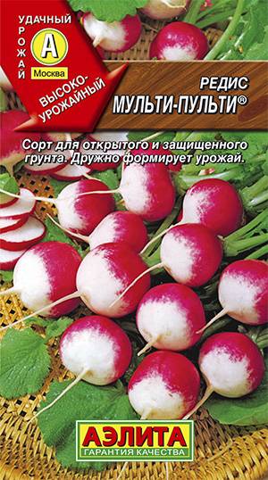 Высокопродуктивный среднеспелый сорт с качественными корнеплодами привлекательной окраски. Дружно формирует урожай за 25-30 дней от всходов. Пригоден для возделывания в открытом грунте, весенних пленочных теплицах и парниках. Корнеплоды массой 20-25 г. Мякоть белая, часто прозрачная, иногда с розоватым оттенком, плотная, сочная, остро-сладкого вкуса. Урожайность 2,5-3,1 кг/м2.