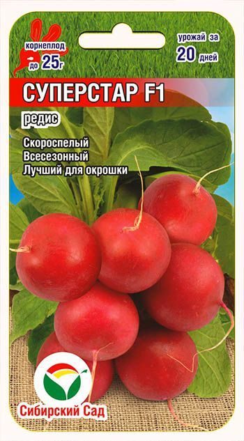 Скороспелый гибрид редиса голландской селекции для всесезонного выращивания в открытом и защищенном грунте. От всходов до технической спелости 19-21 день. Гибрид нейтрален к длине дня, устойчив к пониженной освещенности и цветушности, характеризуется дружным формированием урожая и выровненностью корнеплодов. Корнеплоды крупные (до 3 см в диаметре), округлой и округло-овальной формы, с гладкой кожицей ярко-красного цвета, средней массой 20-25 грамм. Мякоть белая, плотная, сочная, полуострого вкуса. Рекомендуется для использования в свежем виде. Урожайность 2-2,5 кг/м² .