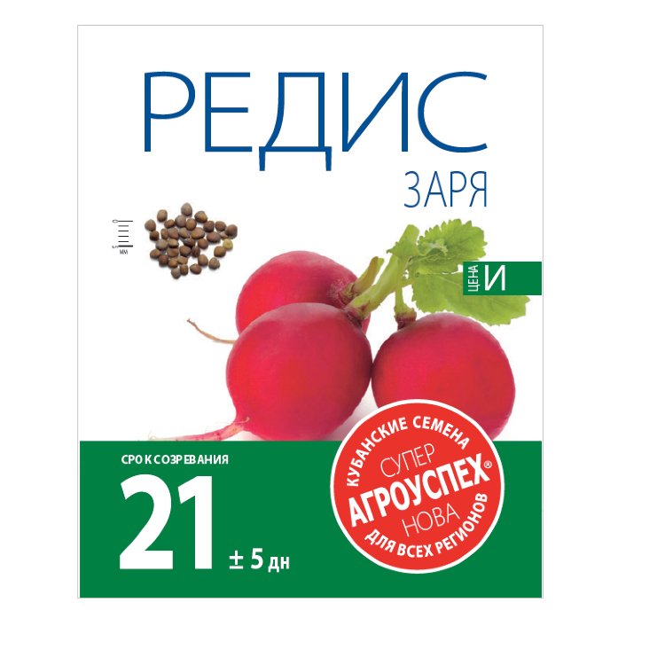 Дружная отдача урожая. Раннеспелый сорт (18-24 дня). Корнеплод красно-малиновый, округлый или эллиптический. Длина корнеплода 3,9 см, диаметр 2,7 см. Поверхность ровная, головка плоская, нежная. Мякоть белая и бело-розовая, плотная, сладкая, слабоострого вкуса. Масса корнеплода 13-27 г. Корнеплод полностью погружен в землю. Относительно устойчив к болезням. Рекомендуется для выращивания в открытом грунте, весенних теплицах, пленочных укрытиях.