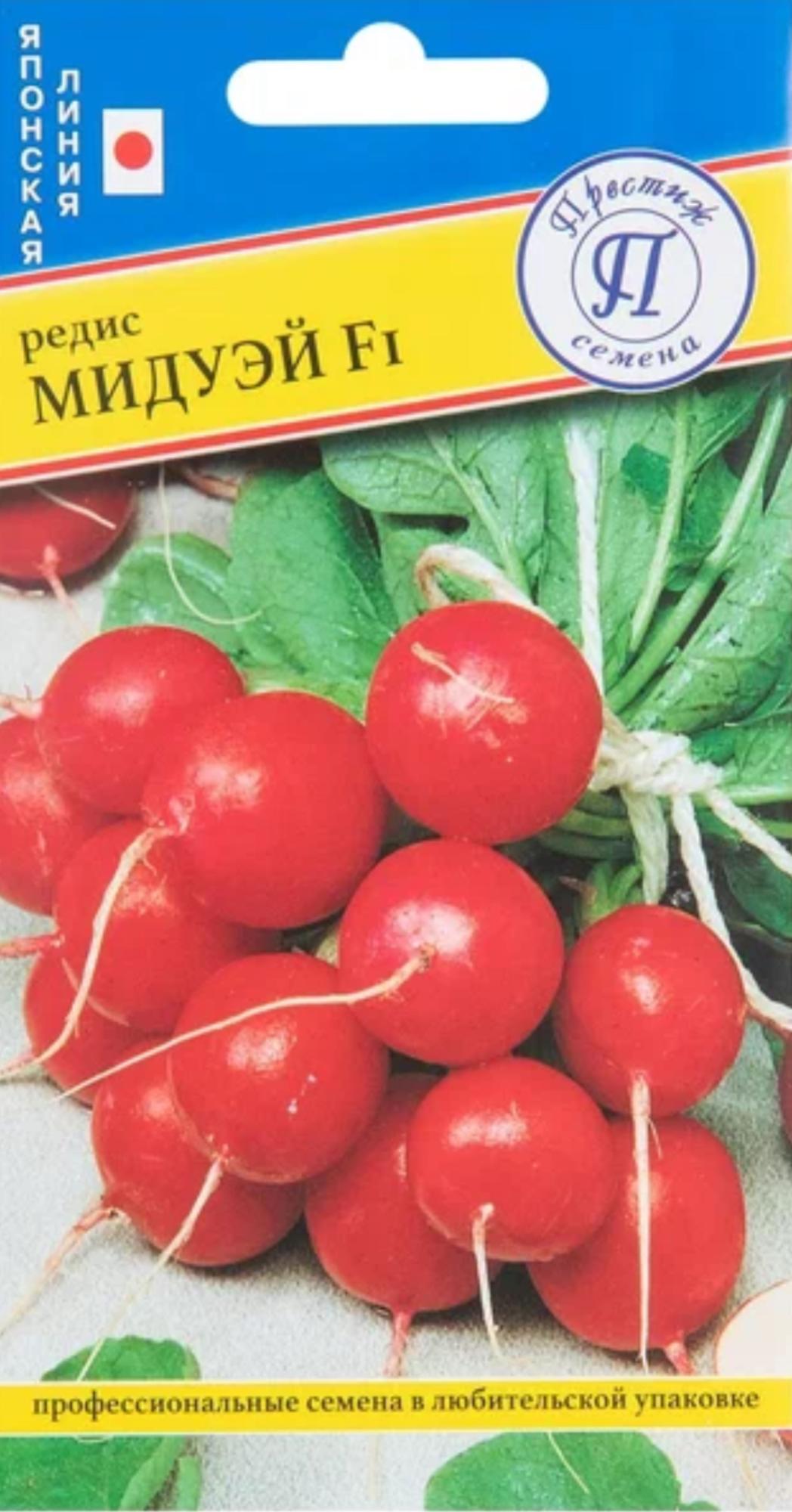 Мидуэй F1-раннеспелый, высокоурожайный гибрид редиса. Вегетационный период составляет около 23 дней от появления всходов. Гибрид хорошо адаптируется к различным условиям выращивания и переносит пониженные температуры. Подходит для всесезонного выращивания. Корнеплоды округлой формы, окраска шейки и коры насыщенно-красного цвета, диаметр 3,5 cм. Мякоть привлекательного белого цвета, отличного качества, не пустеет. Мидуэй F1 характеризуется высоким выходом товарной продукции, отличной выровненностью по форме и размеру.