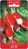 Корнеплод красного цвета с белым основанием, средней величины удлиненно-цилиндрической формы. Очень сочный, имеет великолепный товарный вид. Устойчив к цветушности. Не одревесневает, не растрескивается. Вегетационный период составляет 18-25 дней. Для открытого и защищенного грунта. Посев: апрель-октябрь