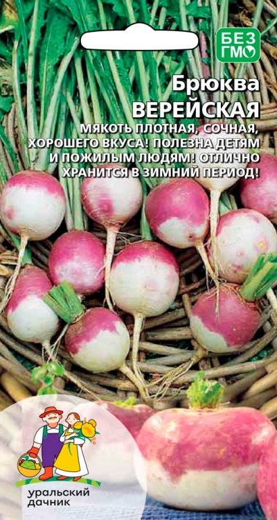 Среднеспелый холодостойкий сорт, от всходов до начала технической спелости 83–90 дней. Выращивается в открытом грунте, отлично хранится в зимний период. По вкусовым и полезным качествам сходна с репой, но превосходит её по количеству минеральных солей и углеводов. Содержание витамина C в корнеплодах остается неизменным в течение всего периода хранения. Особенно полезна детям и пожилым людям. Корнеплод плоскоокруглой формы, с сильной антоциановой окраской кожуры, массой 300–400 г. Мякоть интенсивно жёлтая, плотная, сочная, хорошего вкуса. Урожайность 3,5–4,0 кг/м2. В пищу употребляют корнеплоды в свежем, варёном, тушёном виде.