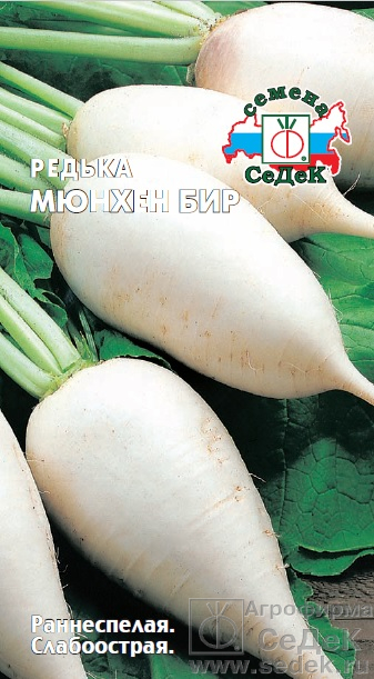 Раннеспелый (50-55 дней) сорт. Корнеплоды крупные, удлиненно-овальные, белые, массой 300-450 г. Мякоть белая, плотная, сочная, слабоострая. Вкусовые и диетические качества высокие. Урожайность 4-4,5 кг/м². Ценность сорта: дружное формирование раннего урожая, выравненность корнеплодов. Рекомендуется для употребления в свежем виде и непродолжительного хранения.