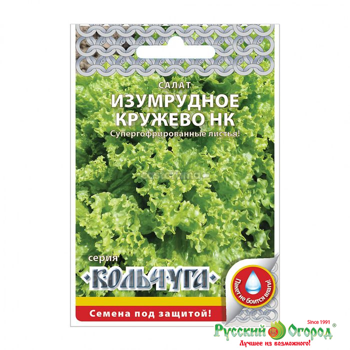 Раннеспелый высокодекоративный сорт листового салата. От появления всходов до уборки 42-52 дня. Образует мощную розетку листьев высотой до 25 см. Масса растения до 500 г. Листья сильно гофрированные, очень нежные, отличных вкусовых качеств, красивого ярко – зеленого цвета. Предназначен для выращивания в открытом грунте и для пленочных укрытий. Пригоден для выращивания на гидропонике. Сорт устойчив к стеблеванию и низкой освещенности. Урожайность до 5 кг/м.кв.