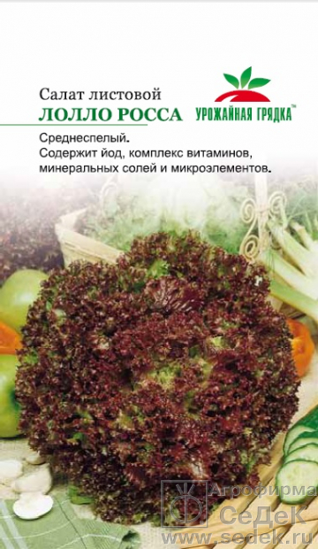 Раннеспелый (38-40 дней) высокоурожайный сорт с высокими диетическими качествами. Содержит йод, комплекс витаминов, минеральных солей и микроэлементов. Формирует крупную розетку сильно гофрированных листьев с окраской от зеленой до красно-малиновой. Диаметр розетки до 22 см, масса 80-100 г. Устойчив к цветушности. Ценность сорта: гарантированный ранний урожай, высокие вкусовые, декоративные и товарные качества.
