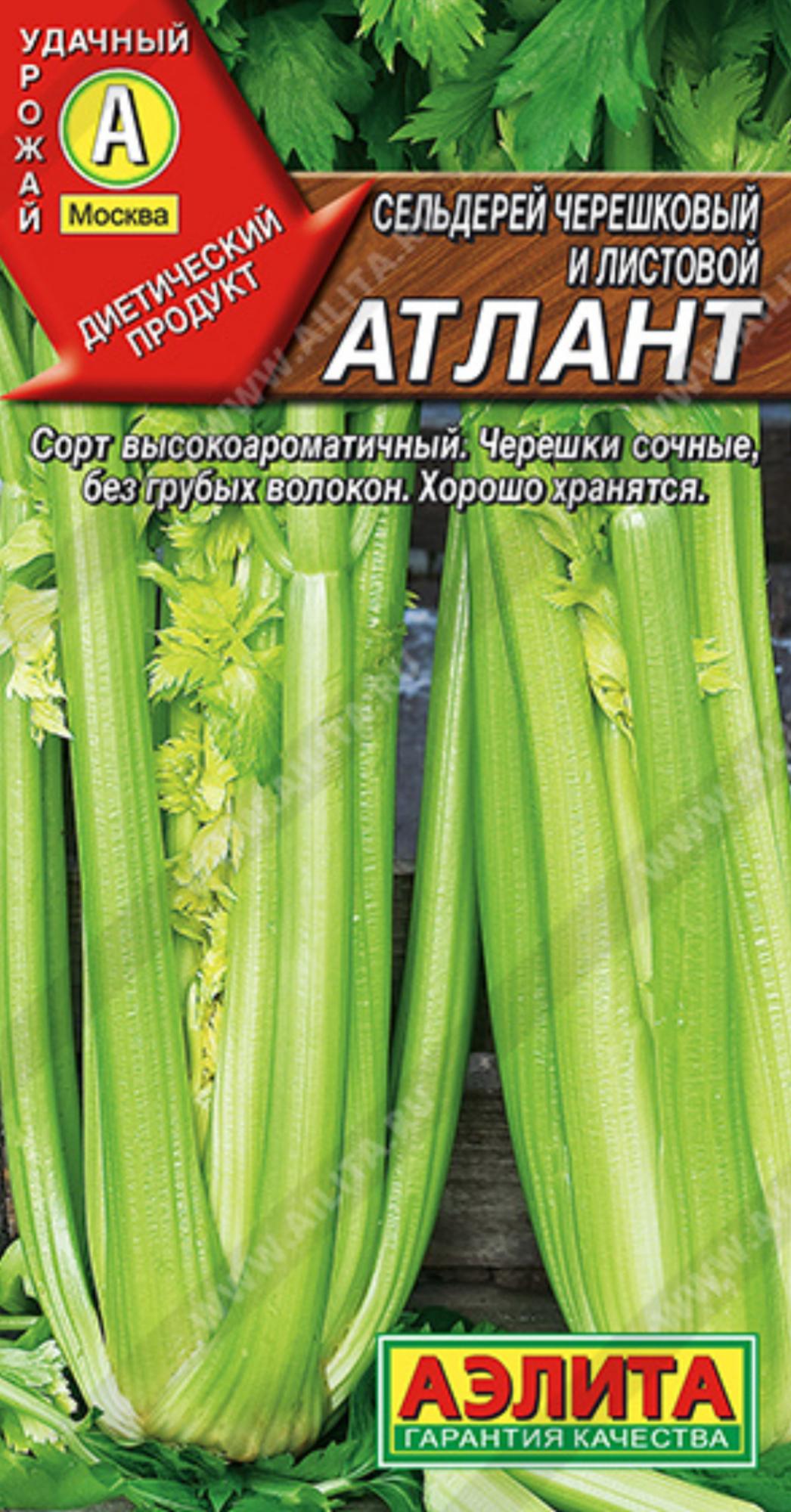 Среднеспелый сорт отечественной селекции. От всходов до полной уборки около 170 дней. Розетки прямостоячие, мощные, высотой 40-45 см, массой 300- 340 г. Черешки длиной 15-20 см, сочные, с великолепной ароматичностью, без горечи. Сорт устойчив к цветушности и септориозу. Отличная пряно-вкусовая добавка как в свежем, так и в сушеном виде. Урожайность черешков с листьями – 2,8-3,3 кг/м2.