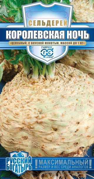 Среднеспелый (150-160 дней от всходов до технической спелости) сорт корневого сельдерея. Корнеплод очень крупный, массой до 1 кг, округлой формы, серовато-белый, гладкий, с небольшой корневой мочкой, расположенной в нижней части. Мякоть нежная, ароматная, с высоким содержанием сахара. Погруженность корнеплода в почву средняя, легко выдергивается. Сорт характеризуется хорошей лежкостью и транспортабельностью. Используют для приготовления гарниров, салатов и в качестве приправы. Употребление сельдерея способствует выведению солей, повышает тонус организма.