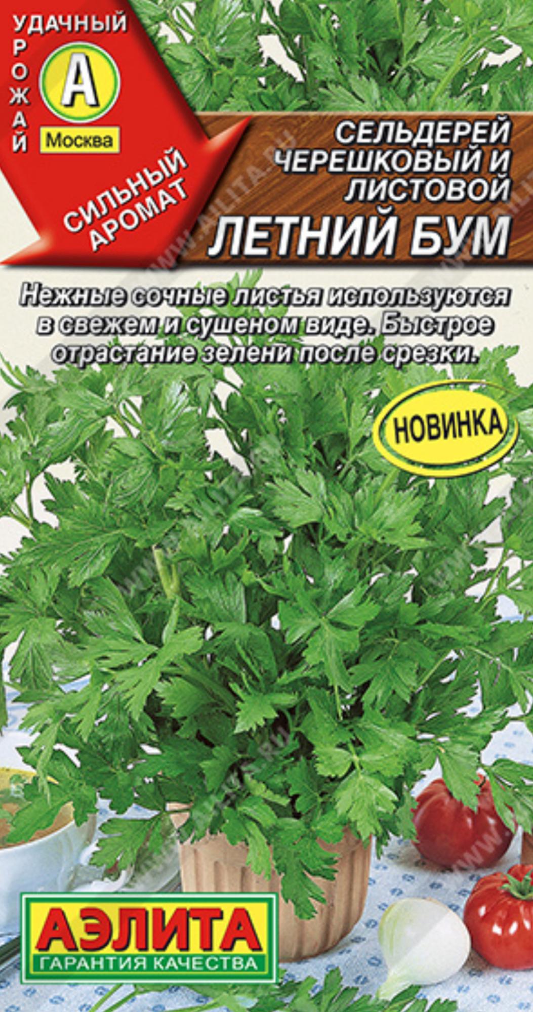 Среднеспелый сорт сельдерея, нежные листья которого используются в свежем и сушеном виде. Это незаменимая по своей пользе, пряно-вкусовая культура с крупными, но компактными и плотными розетками листьев высотой 40-50 см. Первую выборочную срезку ароматной зелени следует проводить через 73-78 дней от появления всходов, а массовую срезку – через 90-100 дней. Регулярная уборка нарастающих листьев обеспечит длительную отдачу урожая вплоть до заморозков. Сорт подходит для замораживания и маринования.