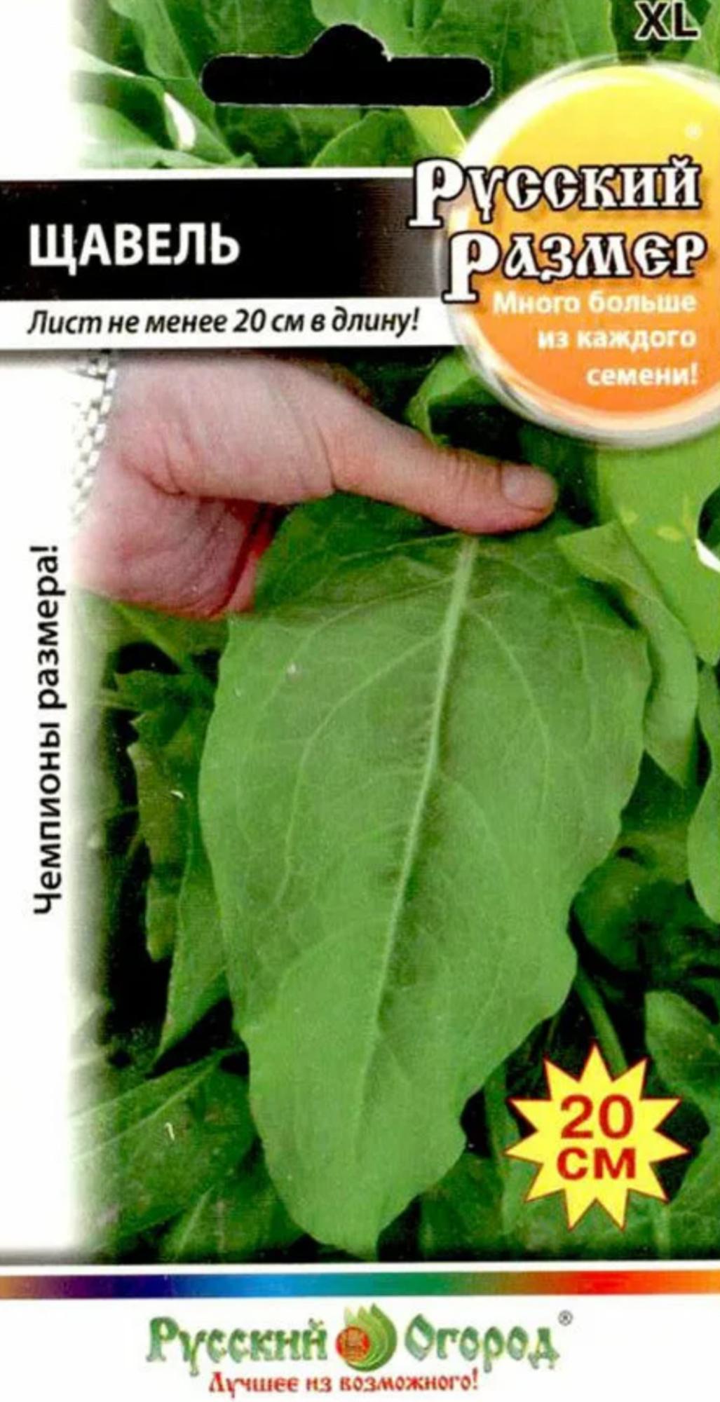 Не менее 20 см в длину каждый лист! Крупнолистый сорт щавеля, всего 2-3 листочков которого хватит для приготовления щей. Сохраняет нежность и сочность на протяжении всего сезона.