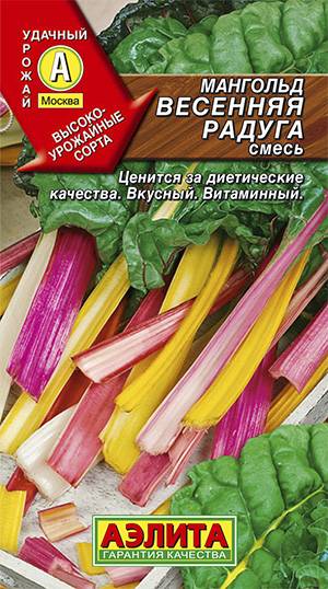 Яркая и полезная для здоровья смесь сортов для открытого и защищенного грунта. Включает: мангольд Алый, Зеленый, Изумруд и Невеста. Рекомендуется для использования в домашней кулинарии молодых листьев и черешков. Начало хозяйственной годности наступает через 40-55 дней от всходов. Розетки листьев вертикальные, компактные, высотой 50-60 см. Урожайность зеленой массы 4-5 кг/м2. Сорта засухо- и холодоустойчивые. Обладают высокой декоративностью и могут использоваться для оформления садового участка.