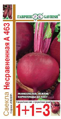 Раннеспелый (69-99 дней от всходов до технической спелости) сорт. Посев в грунт конец апреля – начало мая по схеме 6х30 см на глубину 2,0-2,5 см. Розетка листьев полустоячая, высокая. Корнеплод плоский и плоскоокруглый. Кожица темно-красная, у головки сероватая. Мякоть темно-красная, часто с черноватыми кольцами. Масса корнеплода 160-400 г. Вкусовые качества хорошие. Сорт относительно устойчив к церкоспорозу. Рекомендован для потребления в осенне-зимний период. Урожайность 2,9-7,0 кг/м2.