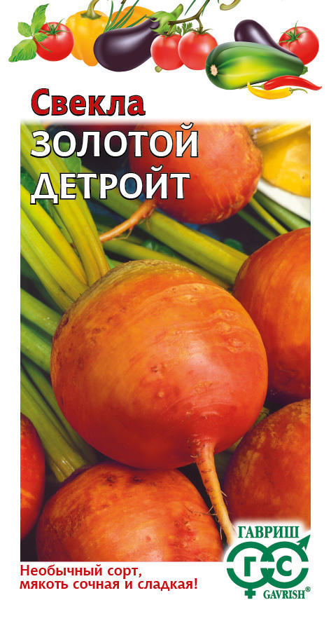 Разновидность свеклы сорта Детройт с оранжевой кожурой и золотистой мякотью сохраняет все свойства обычной столовой свеклы. Раннего (55 дней) срока созревания. Листья растения можно использовать как листья шпината для различных салатов течении всего сезона. Корнеплод округло-вытянутой формы, массой 100-150 г. Мякоть сладкая, сочная. При созревании корнеплоды не становятся волокнистыми, хорошо хранятся. Рекомендуется для использования в домашней кулинарии.
