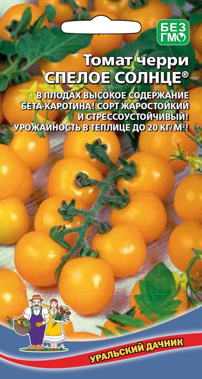Раннеспелый сорт (90-100 дней) индетерминантного черри для выращивания в теплицах и в открытом грунте. Формирует широко разветвленные кисти с большим количеством золотисто-жёлтых плодов, по 20-25 штук на 1 кисти. Плоды имеют круглую форму, привлекательный цвет, небольшого размера, сладкие на вкус. Средний вес плода 15-20 грамм. Плодоношение в течение всего сезона.