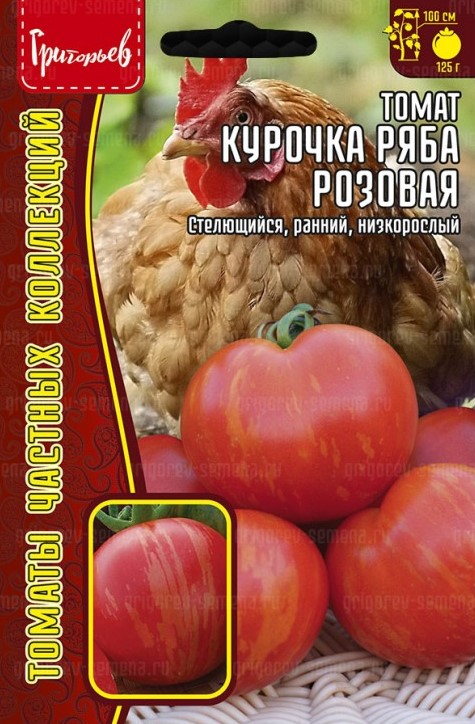 Прекрасный раннеспелый, низкорослый, стелющийся сорт, с очень красивыми плодами. Помидоры округло-куловидные, плотные, пастельно-розоватые, с жёлтыми полосками, весом 100-150 г. Урожайность очень высокая. Лёжкость и транспортабельность томатов хорошая. Данный сорт отлично подходит как для употребления в свежем виде, так и для консервирования.