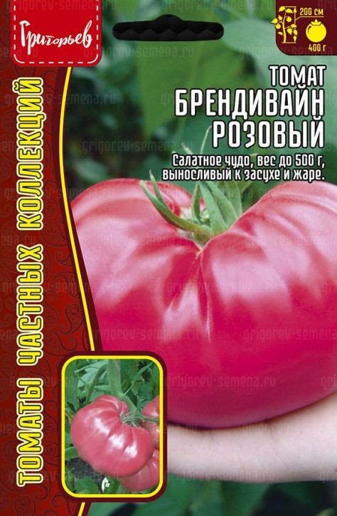 Этот крупноплодный розовый томат порадует Вас невероятным, сказочным вкусом. Пожалуй это один из самых вкусных помидоров в мире. Томат Брендивайн розовый – старинный среднеспелый сорт. Предположительное его происхождение – США. Растение томата мощное, высокорослое. На открытой грядке обычно бывает не выше 120-150 см. В теплице вырастает до 180-200 см. Плоды крупные, средний вес 300-500 г, на нижних ветках плоды могут доходить до 1 кг. Мясистые помидоры вкусны в нарезках и салатах, зимних заготовках и вяленые кусочками.