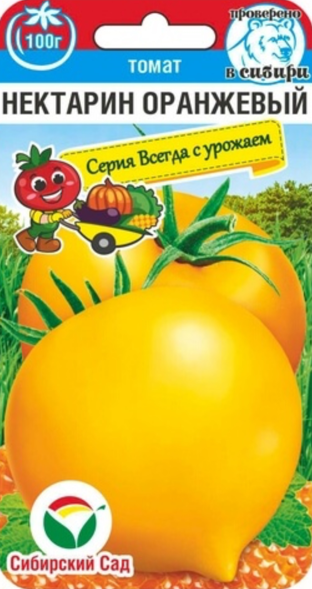 Растение высотой 70-80 см. Кисти сложные, обильные, усыпаны аккуратными плодами массой 70-100 г. Томаты округлые со слабым носиком, апельсиново-оранжевого цвета, без зеленого пятна у плодоножки. Характеризуются хорошим вкусом и достаточно плотной кожицей, не трескающейся при термической обработке. Урожайность сорта хорошая - до 7 кг/м2.