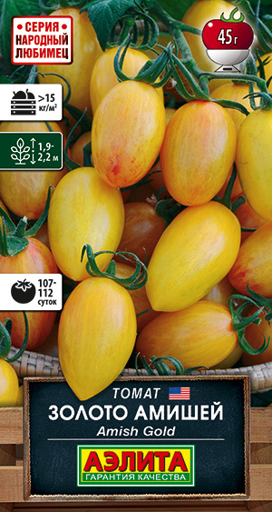 Настоящая золотая гирлянда! Гроздья желтых, словно светящихся плодов-сливок делают этот томат одним из фаворитов! Раннеспелый сорт (107-112 суток от всходов до сбора урожая) был создан селекционером Джеффом Доусоном на основе потрясающего томата Амиш паста (старинного сорта секты Амишей из США) и ультрасладкого гибрида Sungold. Растения индетерминантные, высотой 1,9-2,2 м. Помидоры медово-сладкие, с гармоничной кислинкой и богатым послевкусием, массой 35-45 г. Отличный выбор для салатов и сэндвичей! Более мелкие плоды пригодны для цельноплодной консервации. Урожайность более 15 кг/м2 в теплице. Отлично транспортируется и хранится.