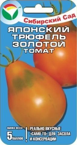 Среднеспелый интетерминантный сорт с оригинальными плодами в виде трюфеля. Интересная компактная форма, оригинальный сладковато-кислый вкус и отличная плотная консистенция плодов делают этот сорт фаворитом цельноплодного консервирования среди томатов. Растение высокорослое, требует подвязки и пасынкования. В кисти 5-6 красивых золотых плодов весом 100-150 гр. с плотной кожицей, сахаристой мякотью и великолепным вкусом.
