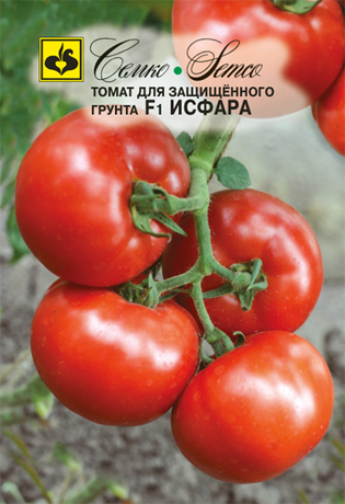 Томат Исфара F1 - среднеранний, полудетерминантный гибрид для защищенного грунта. От всходов до созревания 95–110 дней. Растение генеративного типа, средневетвистое, высотой 1,5 м. Первое соцветие закладывается над 7–9 листом, в кисти 4–6 плодов. Плоды плоскоокруглые, многокамерные, плотные, массой свыше 200 г, красные, без зеленого пятна у плодоножки, слегка ребристые. Устойчив к растрескиванию и температурным стрессам. Вкус отличный, товарность и транспортабельность высокие. Лежкость до 15–20 дней. Томат для защищенного грунта Исфара F1 устойчив к вертициллезу, фузариозу, вирусу томатной мозаики. Используется для свежего потребления. Рекомендован для выращивания в пленочных теплицах и открытом грунте с подвязкой к опоре. Схема посадки 70х40 см. Урожайность свыше 20 кг/м2.