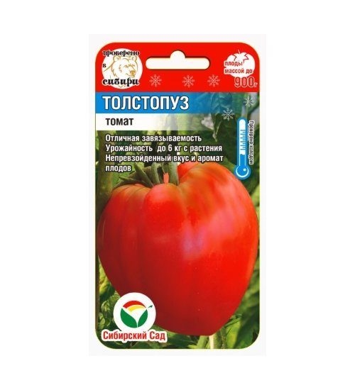Растение высотой до 2-2,2 м. Плоды очень крупные почковидной формы, массой до 900 г, мясистые, малиново-розовые, с хорошим вкусом и ароматом. Дегустационная оценка высокая - 4,5 балла. Идеален для летних салатов, пюре и соков. Плодоносит до поздней осени. Урожай до 7 кг с растения.