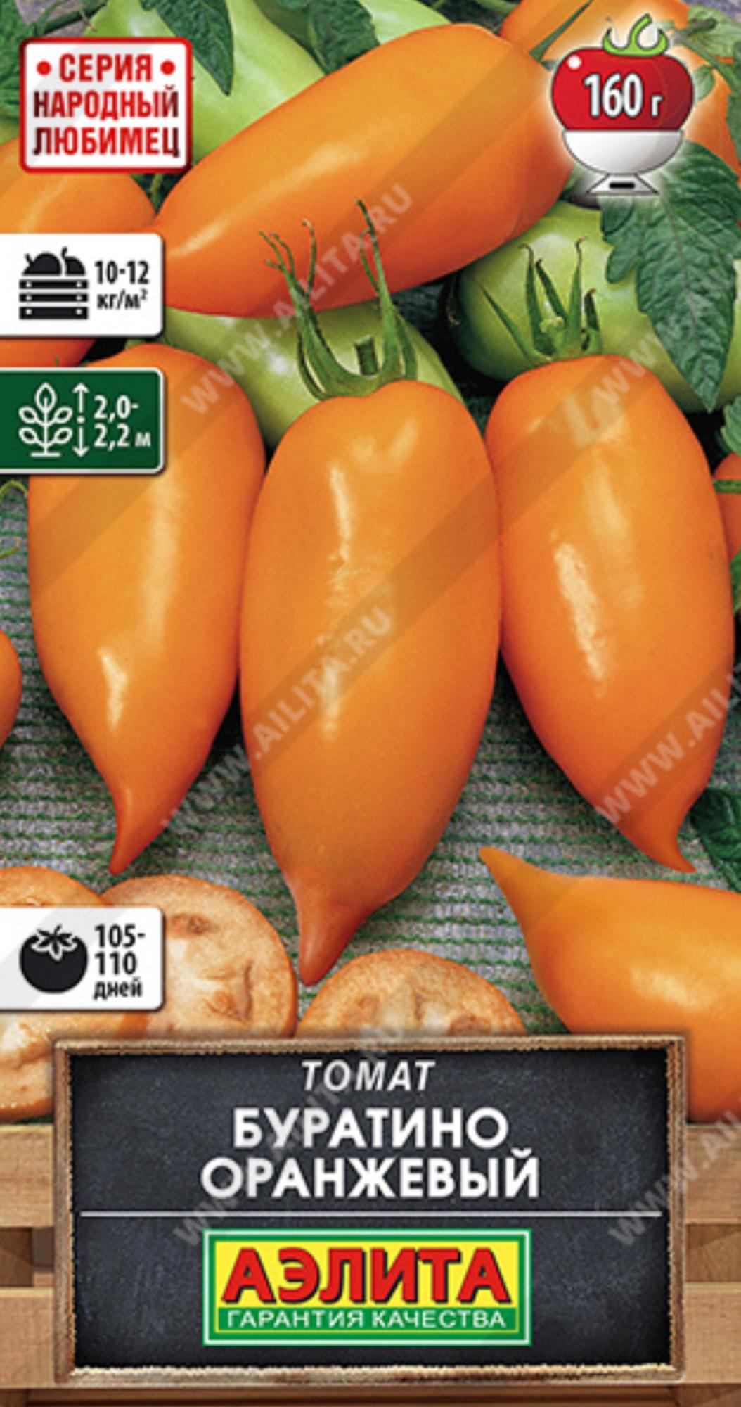 Раннеспелый сорт для пленочных укрытий и открытого грунта. Формирует урожай через 105-110 дней от всходов. Индетерминантный, высотой в теплице до 2-2,2 м. На стадии рассады у томата скручиваются листья – это сортовой признак. Плоды* вытянутой цилиндрической формы, с носиком, очень красивые, средней массой 140-160 г (отдельные до 180 г). В кисти формируется до 4-6 томатов, которые висят гроздьями. Мякоть вкусная, сочная и очень плотная. Плоды сначала светло-зеленые, затем, по мере созревания, кожица их обретает ярко-оранжевый цвет. Сорт с высоким содержанием бета-каротина и ликопина, не вызывает аллергию. Использование универсальное. Урожайность в теплице 10-12 кг/м2.