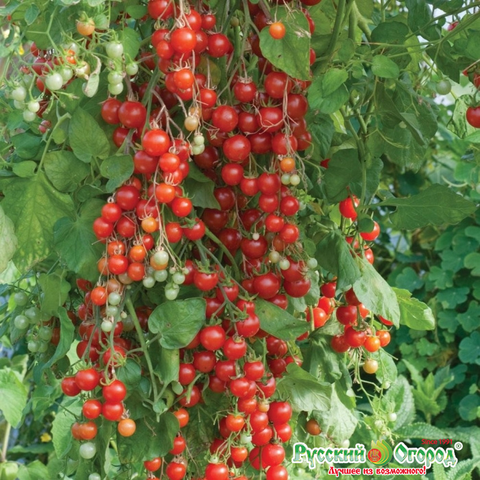 Индетерминантный ультраскороспелый, самый болезнеустойчивый гибрид. Великолепный черри-томат, получивший высокие оценки потребителей по различным показателям. Имеет самую большую кисть - до 50 суперсладких плодов размером с шарик для пинг-понга. Характеризуется самым длительным периодом плодоношения, на который не влияют болезни и первые заморозки.