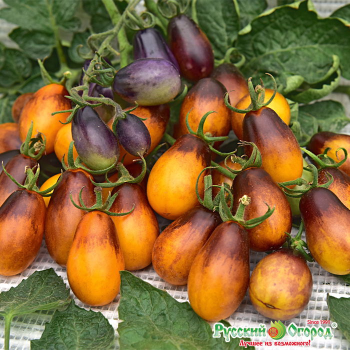 Два оттенка спелых слив – густой фиолетовый и насыщенный желтый слились воедино в каждом томате.