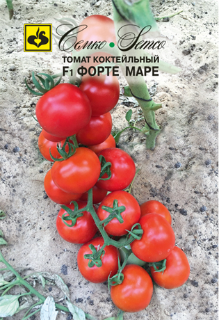 Томат Форте Маре F1 - раннеспелый коктейльный кистевой гибрид LSL-типа. От всходов до созревания плодов 90–95 дней. Растение среднеоблиственное. Формируют в один стебель. Первое соцветие формируется над 7–9 листом, последующие через 3 листа. В кисти, в среднем, завязывается 8–10 плодов. Плоды округлой формы, темно-красной окраски, двухкамерные, массой 40–60 граммов, плотные, гладкие. Собирают как кистями, так и отдельными плодами. Вкусовые и товарные качества помидоров отличные, сохраняются без их изменения в течение 40–45 дней. Гибрид устойчив к вирусу томатной мозаики (ToMV). Транспортабельность и лежкость хорошие. Используется для потребления в свежем виде и цельноплодного консервирования. Рекомендуется для выращивания во всех типах теплиц и в открытом грунте с подвязкой к опоре. Схема посадки 70х40 см. Урожайность свыше 14–15 кг/м2.
