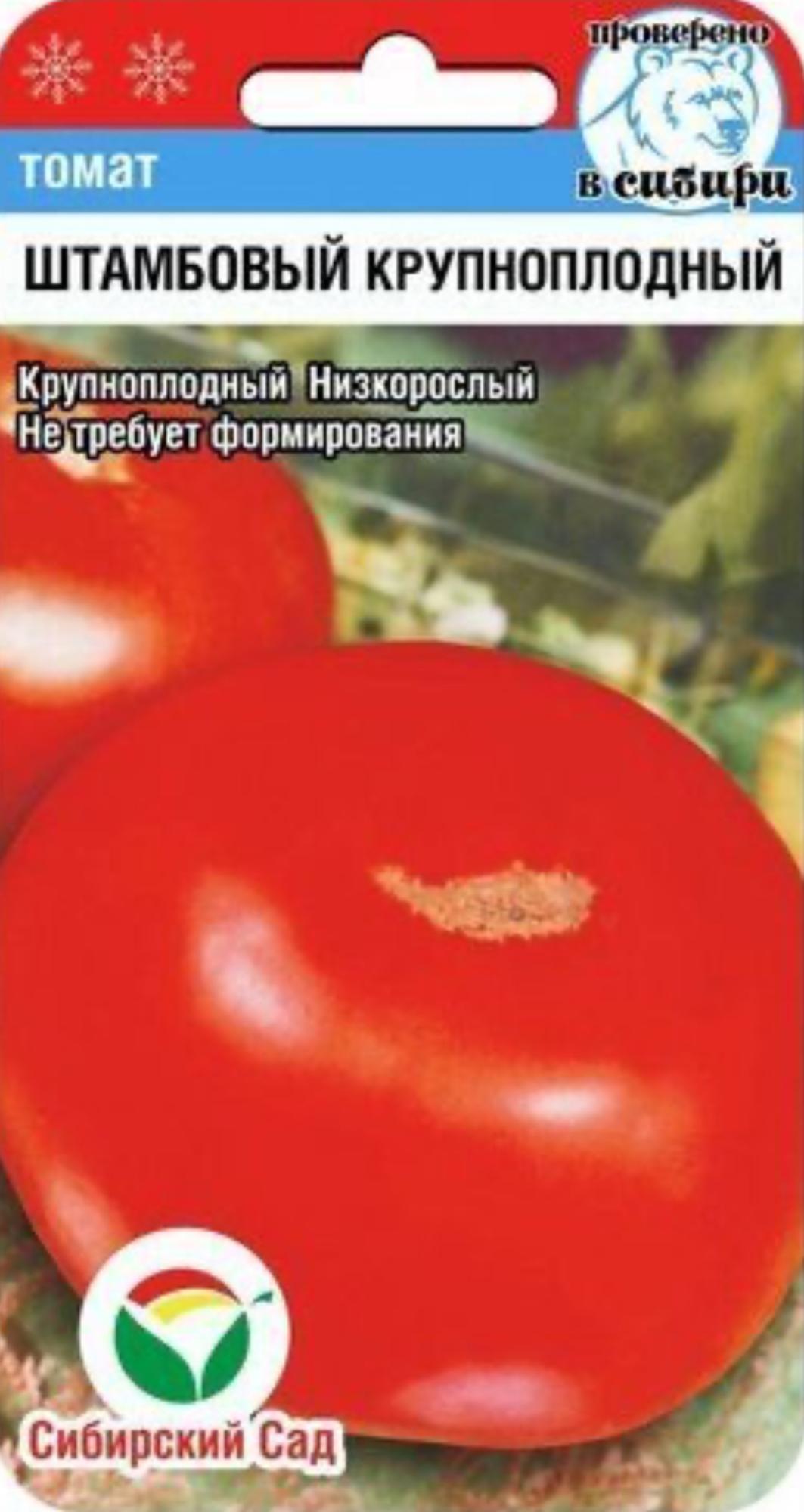 Среднеспелый крупноплодный детерминантный сорт. Растение низкорослое, выстой 60-80 см, штамбовое. Выращивают в 2-3 стебля или без формирования в открытом грунте и под пленочными укрытиями. Плоды красные, плоскоокруглой формы мясистые, массой до 600г, в кисти размещаются очень плотно. К основным достоинствам сорта относятся крупноплодность в сочетании со штамбовым типом куста, устойчивость к вытягиванию в рассадный период, довольно высокая устойчивость к грибным пятнистостям листьев.