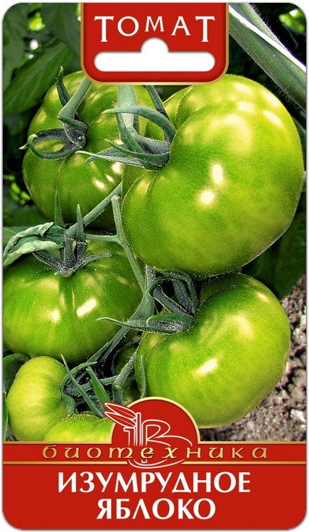 Растения индетерминантные, мощные, высотой до 1,5 м. Плоды средней массой 250 г., мясистые, плоскоокруглые, слаборебристые, при созревании зеленые с бронзовым отливом. Мякоть сладкая, деликатесного вкуса, остаётся ярко- зелёного цвета. По вкусовым качествам значительно превосходит многие красноплодные сорта. Обладает диетическими и лечебными свойствами. Урожайность — до 10 кг с одного растения. Предназначен для употребления в свежем виде.