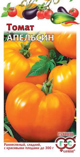 Раннеспелый (98-110 дней) высокорослый сорт для открытого грунта и пленочных укрытий. Плод округлый, гладкий, крупный, массой 180-300 г, мясистый, сладкий, с малым количеством семян, по цвету и форме напоминает апельсин. Ценность сорта: стабильная урожайность, выравненность плодов, высокие вкусовые и товарные качества. Рекомендуется для потребления в свежем виде, приготовления салатов и консервирования.