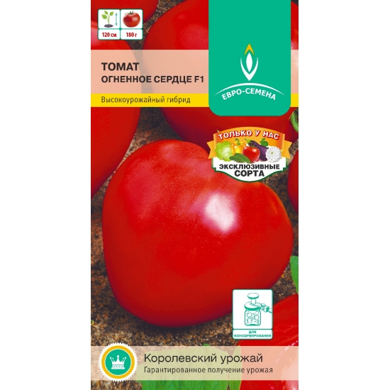 Великолепный раннеспелый гибрид для открытого грунта и пленочных теплиц. Период от всходов до первого сбора плодов 90 – 95 дней. Растение детерминантное, мощное, высотой до 120 см. Образует сердцевидные, плотные, транспортабельные, ярко - красные плоды, без зеленого пятна у плодоножки. Масса плода до 180 г. Вкусовые качества – отличные. Используется для потребления в свежем виде, переработки и консервирования. Отличается высокой урожайностью и устойчивостью к вирусу табачной мозаики, черной бактериальной пятнистости и альтернариозу.