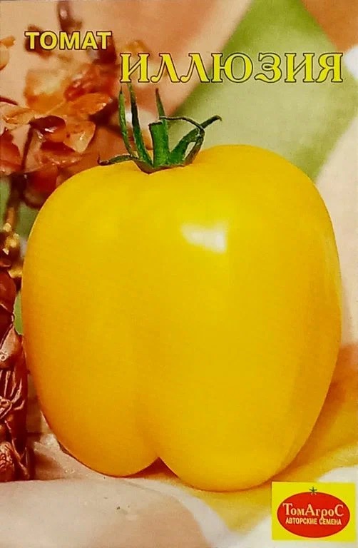 Рассада томата Иллюзия занесена в Государственный реестр РФ и рекомендована для выращивания на личных огородных участках и на маленьких фермах. Растения высаживаются в грунт под пленку. Семена относятся к среднеспелым. Плоды можно получить через 121 день после появления первых всходов. Культура характеризуется:Индетермальное; Укороченные междоузлия; Листья зеленые, среднего размера; Простое соцветие. Плоды вырастают цилиндрической формы с небольшой ребристостью. Окраска зрелого помидора желтая. Максимальная масса 90 граммов. По вкусовым качествам томаты хорошие.