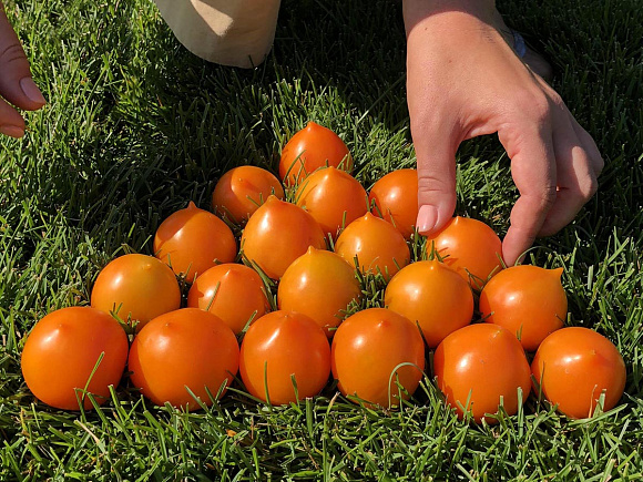 Скороспелый коктейльный сорт помидоров нового поколения с высокой дружностью созревания. Куст штамбовый, низкорослый, с короткими пасынками, не требует подвязки и формирования. Плоды округлые, плотные, ярко-оранжевые, сладкие, с небольшим острым «носиком». Не растрескиваются. Отличаются высоким содержанием бета-каротина и низким процентом кислоты. Рекомендуются для диетического питания, активизируют работу иммунной системы. Сорт не поражается вершинной гнилью и фитофторой. Не боится заморозков.