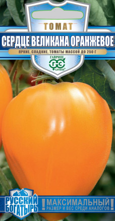 Сорт среднепоздний для теплиц и открытого грунта (южные регионы). Растение индетерминантное нуждается в опоре. Период плодоношения длительный. В кисти содержится 3-5 крупных плодов сердцевидной формы. Масса 200-250г. Спелые плоды ярко-оранжевого цвета, многокамерные, сладкие, ароматные, мясистые. Хороши для употребления в свежем виде, салатов, консервирования кусочками в собственном соку. Посев на рассаду - в начале марта. Пикировка - в фазе первого настоящего листа. Высадка рассады в теплицы - в конце апреля-начале мая. Формируют в один стебель, удаляя все «пасынки», а также прищипывают точку роста в конце вегетации. Схема посадки: 40х60 см. Семена сохраняют всхожесть в течение 10 лет при оптимальных условиях хранения. Рекомендуется увеличить норму высева по окончании срока годности.