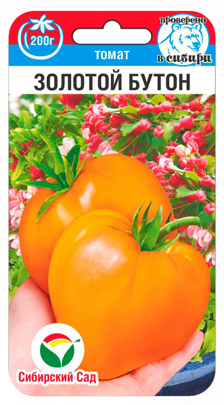 Растение низкорослое высотой до 60 см. Крепкие сильные кусты стойко выдерживают большую нагрузку из 4 кистей с 5-7 золотисто-оранжевыми плодами в форме нераскрытого бутона, массой 100-200г. Мякоть мясистая и вкусная с повышенным содержанием бета-каротина (до 3,8 мг). Томаты хороши для употребления в свежем виде, цельноплодного консервирования, приготовления соков, лечо. Сорт достаточно устойчив к основным заболеваниям. Урожайность сорта до 7,5 кг/м2.