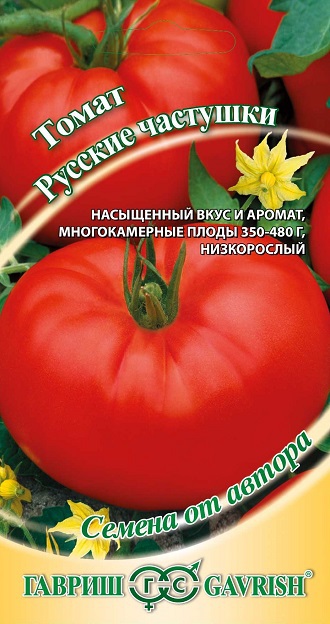 Среднеспелый детерминантный (с ограниченным ростом) низкорослый сорт. Растение высотой до 1 м. Рекомендуется для выращивания в открытом грунте и пленочных теплицах. Плоды многокамерные, дородные, красные, массой 350-480 г, до 3-4 шт. в кисти. Мякоть сочная, ароматная, с аппетитным насыщенным томатным вкусом. Сорт очень урожайный, устойчив к основным заболеваниям томатов. Рекомендуется для приготовления вкуснейших летних салатов, консервирования кусочками в собственном соку.