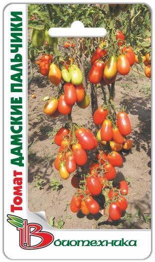 Тип куста - детерминантный, компактный. Листья среднего размера, имеют темно-изумрудный оттенок. Кисть простая. Сочленения у плодоножек отсутствуют. Растение формирует 1-2 стебля. Частота завязывания кистей: через 1-2 листа. На одной кисти формируется 6-8 томатов. Плоды могут быть гладкими или с небольшой ребристостью. По форме цилиндрические, вытянутые – похожи на изящные дамские пальцы. В длину достигают 5-10 см. Имеют ярко-красный оттенок. Незрелые плоды обладают светлым изумрудным окрасом. Пятна у плодоножки отсутствуют. Вес плода 50-75 г. Число гнезд: 2-3. Сорт является малосемянным. Мякоть, плотная, ароматная.