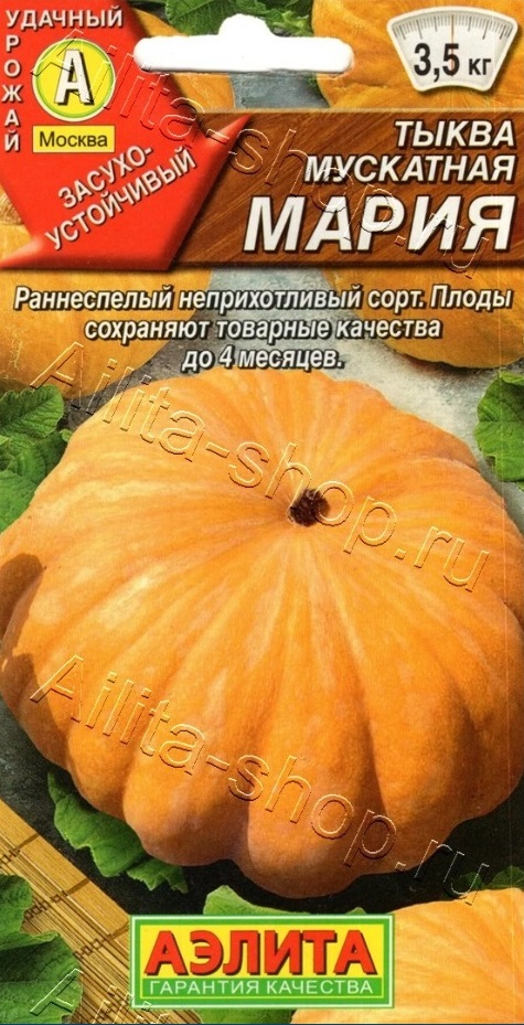Раннеспелый неприхотливый сорт. Цениться за высокую устойчивость к комплексу заболеваний и пониженным температурам. От появления всходов до первого сбора урожая проходит 95-110 дней. Растение плетистое, главный побег длинный. Плод оранжево-коричневый, с восковым налетом, сегментированный, массой 2,1-3,5 кг. Мякоть желтовато-оранжевая, средней толщины, хрустящая, плотная, средней сочности. Рекомендуется для употребления в свежем виде, приготовления соков и цукатов. Плоды сохраняют товарные качества в течение 3-4 месяцев. Сорт засухоустойчивый, транспортабельный.