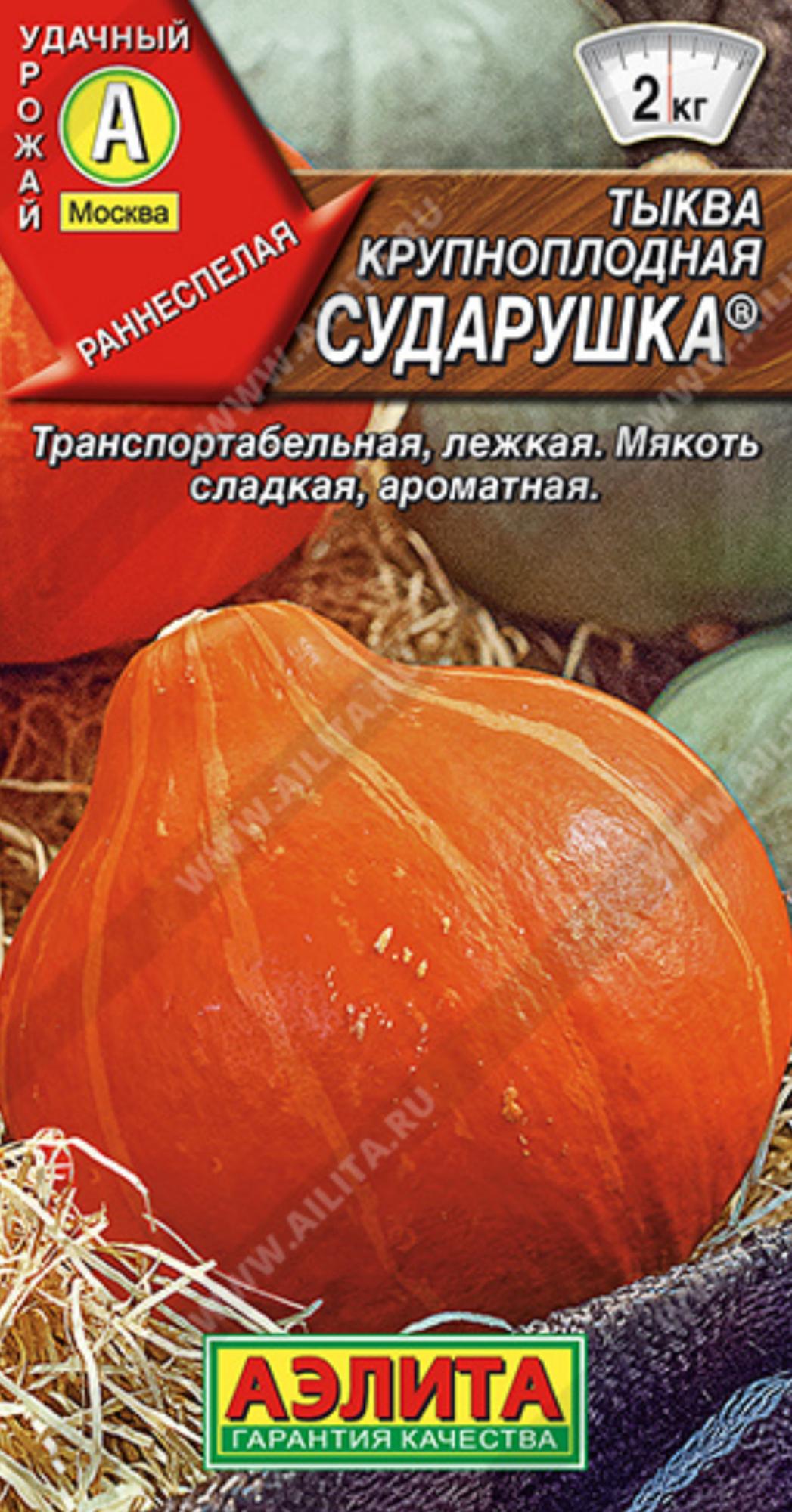 Раннеспелый сорт, плодоносит через 90-100 дней от всходов. Растения среднеплетистые, с 3-4 боковыми побегами. Плоды средней массой около 2 кг (максимально 5-6 кг). Кора мягкая. Мякоть ярко-оранжевая, сладкая, малосочная, ароматная. Содержание сахаров в процессе хранения увеличивается. Подходит для всех видов традиционного использования. Сорт влаголюбивый, устойчивый к пониженным температурам.