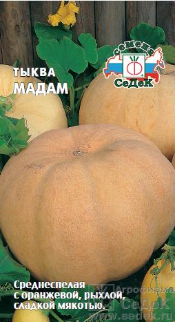 Среднеспелый (110-125 дней) сорт крупноплодной тыквы. Растение длинноплетистое, длина главного стебля до 8 м, формирует одновременно 3-4 плода. Плоды округло-овальные, слабосегментированные, розово-бежевые, с частой мелкоячеистой сеткой, массой 3-5 кг. Мякоть оранжевая, рыхлая, сладкая. Ценность сорта: устойчивость к мучнистой росе и бактериозу, высокая урожайность, лежкость. Содержит витамины, пектин, органические кислоты, минеральные соли. Используется в детском и диетическом питании. Рекомендуется для употребления в свежем и переработанном виде, для приготовления соков.