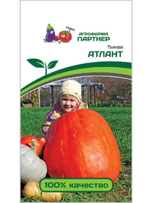 Тыква-гигант, которая накормит даже самую большую семью. Сорт позднеспелый, к сбору урожая можно приступать через 110-130 дней. Растение длинноплетистое, мощное. Плоды шаровидной или овальной формы, с твердой оранжевой кожурой и толстой желтой мякотью, толщина которой достигает 6-8 см. Масса одного плода составляет 15-45 кг, но встречаются экземпляры и до 70 кг! Вкус мякоти очень приятный. Плоды используют для приготовления витаминных соков, пюре, запекают и тушат. А еще с одной тыквы можно получить до 3 стаканов вкусных и полезных семечек. Тыква великолепно хранится на протяжении нескольких месяцев в темном прохладном месте. Сорт мало поражается болезнями, устойчив к стрессовым факторам окружающей среды. На одном растении оставляют не более 2 плодов. Схема посадки — 1 растение/2 м2.