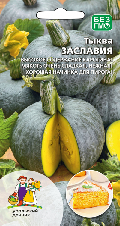 Сладкая мякоть, великолепная начинка для тыквенного пирога. Стабильная урожайность, выравненность плодов, высокие вкусовые качества и питательная ценность их. Среднеспелый сорт. Период от полных всходов до уборки 105-120 дней. Растение плетистое, средней мощности. Плод округло-сплюснутый, сегментированный, серый с элементами сетки. Рисунок – узкие светло-серые полоски. Масса 6-12 кг. Кора средней толщины. Мякоть жёлтая, толстая, плотная, сладкая, малосочная. Вкусовые качества отличные.