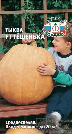 Среднеспелый (110-120 дней) гибрид крупноплодной тыквы. Растение плетистое, ветвистое, формирует 2-3 плода. Плоды округлые, слабосегментированные, ярко-оранжевые, массой 10-12 (до 20) кг. Мякоть желтая, толстая, рыхловатая, сладкая, с высоким содержанием бета-каротина. Ценность гибрида: устойчивость к основным заболеваниям, высокая урожайность, пригодность для длительного хранения и транспортировки. Рекомендуется для употребления в свежем виде, домашней кулинарии, переработки на соки.