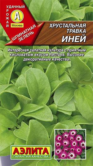 Декоративное однолетнее растение с множеством стеблей высотой около 15 см, полностью покрыто прозрачными пузырьками, которые придают ему оригинальное очарование и напоминают сверкающие кристаллики инея. Листья и молодые побеги имеют приятный, слегка кисловатый вкус. Их используют в сыром виде в салатах или готовят как шпинат. Кроме того, измельченные листья можно использовать вместо мыла.