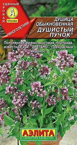 Душица (орегано) – ароматный лекарственный многолетник, отличный медонос. Растения формируют хорошо облиственные кустики высотой 25-30 см, диаметром 45-50 см. Свежая и сушеная зелень дущицы используется в кулинарии в качестве пряно-вкусовой приправы и для приготовления чая. Уборку урожая проводят во время цветения, начиная со второго года вегетации. Растения срезают на высоте 15-20 см от поверхности почвы.