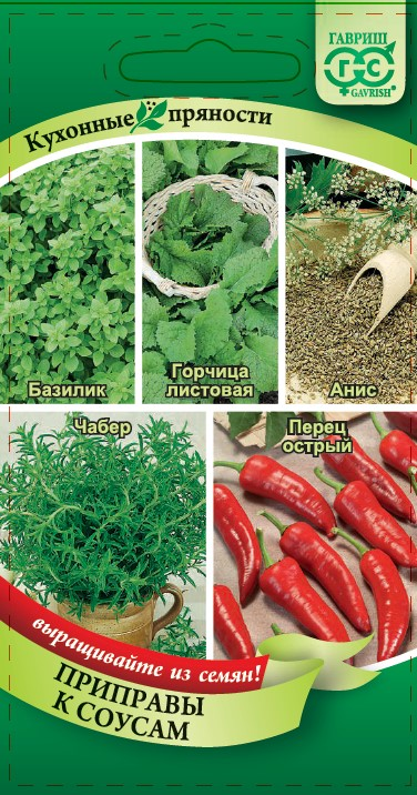 Пряные растения, вошедшие в состав смеси придают соусам неповторимый вкус, их легко и удобно выращивать на даче, они всегда под рукой, свежие — летом или засушенные на зиму. Обязательный компонент острых соусов жгучий перец, вызывает аппетит и усиливает все вкусовые ощущения. Соусом с чили полезно приправлять жирные блюда из мяса, например из баранины или свинины — это положительно скажется на пищеварении. Листовая горчица сочетает вкусы горчицы, салата и хрена. Она обладает пикантным нежным вкусом и может прекрасно заменить жидкую горчицу в приготовлении сливочных соусов для салатов с морепродуктами. Самый известный соус на основе базилика это итальянский «песто», которым средиземноморские жители щедро сдабривают пиццу, овощи, рыбу, мясо и любимую летнюю закуску — салат «Капрезе». Сладкий, освежающий, пряный анис прекрасно дополнит кисло-сладкие ягодные соусы и нежные заправки на основе сливок.