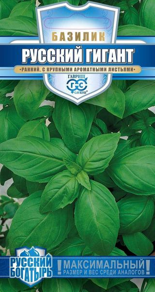 Ранний (от всходов до технической спелости 50-60 дней) сорт крупнолистного базилика с зелеными, сладкими листьями впечатляющего размера. Приятный гвоздичный вкус и пряный аромат придаст пикантности салатами и супам, гармонично дополнит блюда из рыбы и мяса, прекрасно сочетается с чесночным соусом. Растение прямостоячее, высотой 50-60 см. Базилик обладает тонизирующими свойствами, улучшает пищеварение.